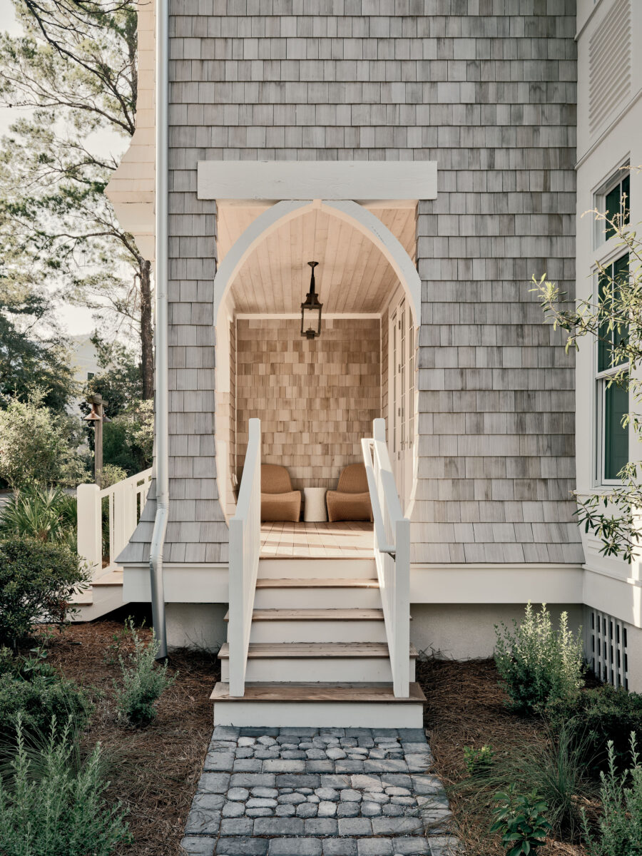 Set within a uniquely wooded pocket of 30A, this new build departs from the expected coastal aesthetic in favor of something quieter and deeply connected to its natural surroundings. Designed by interior designer Laurie Fulkerson and built by Twin Construction together with Archiscapes, who designed the original set of plans, the home reflects a thoughtful balance of longevity, livability, and understated architectural impact—proving that coastal design doesn’t have to rely on seashells and shiplap to feel perfectly at home near the Gulf.
