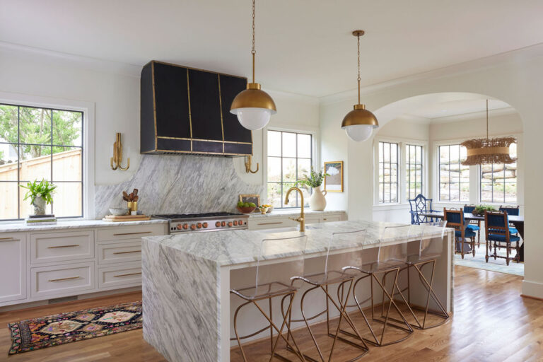 Rules, rules, rules. . . . I don’t like to call them “rules”, but tips! Each mirror and space is unique, but here are some good starting points. When hanging a mirror over a piece of furniture, hang it around 4″ – 6″ above the piece of furniture. The center of the mirror should be around eye level, and since everyone’s heights vary, 57″ – 65″ from the floor to the center of the mirror is a great starting point.